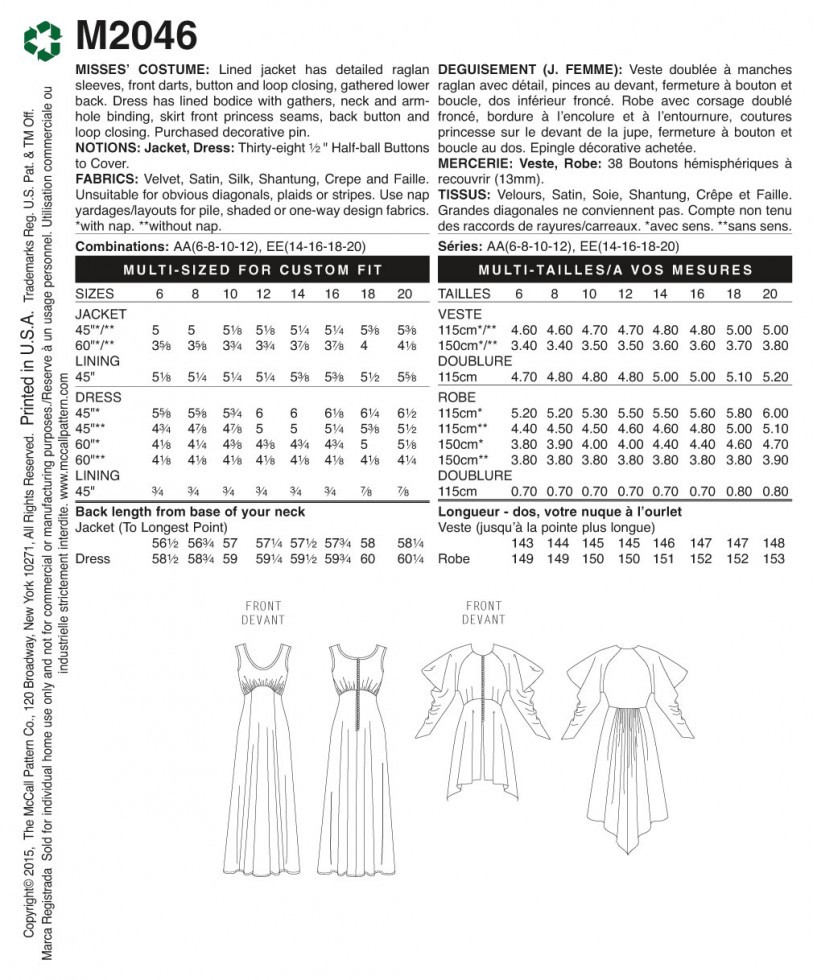 M8127 Sewing Pattern Costume Sorceress Fantasy Mccall S 8127 Cape Bolero Dress Ebay